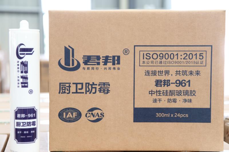 概述 君邦-961 是单组分,湿气固化硅酮密封胶,其含有防霉剂。在室温下固化成具有柔韧性弹性体, 用在需要防霉防水密封场合。