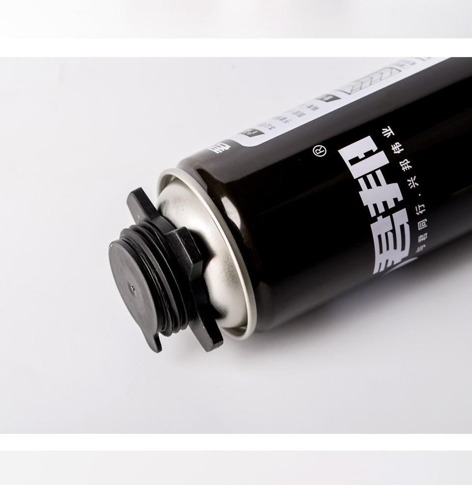 2、使用前均匀摇罐60秒,然后将胶枪或喷管安装到料罐上,施胶始终保持料罐竖直向下;