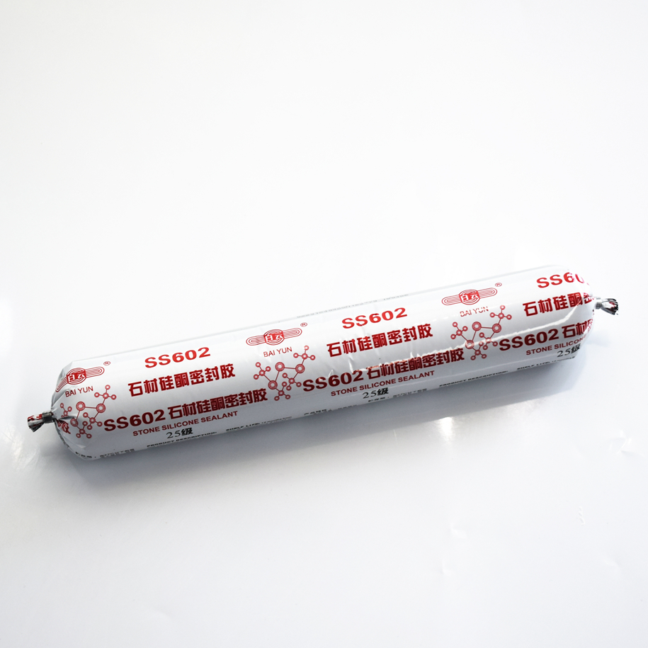 SS602是一种单组分,中性固化,专为各种石材装配、石材幕墙等耐候密封而设计的硅酮密封胶。多孔性材料如大理石、花岗岩等与普通密封剂或胶粘剂作用时会产生污染现象。由于SS602产品的特殊配方设计,密封胶不会对石材等多孔性材料产生污染,并且对各类大理石、花岗石等材质具有良好的粘结效果。使用时用挤胶枪将胶从密封胶筒中挤到需要密封的接缝中,密封胶在室温下吸收空气中的水分,固化成弹性体,形成有效密封。
